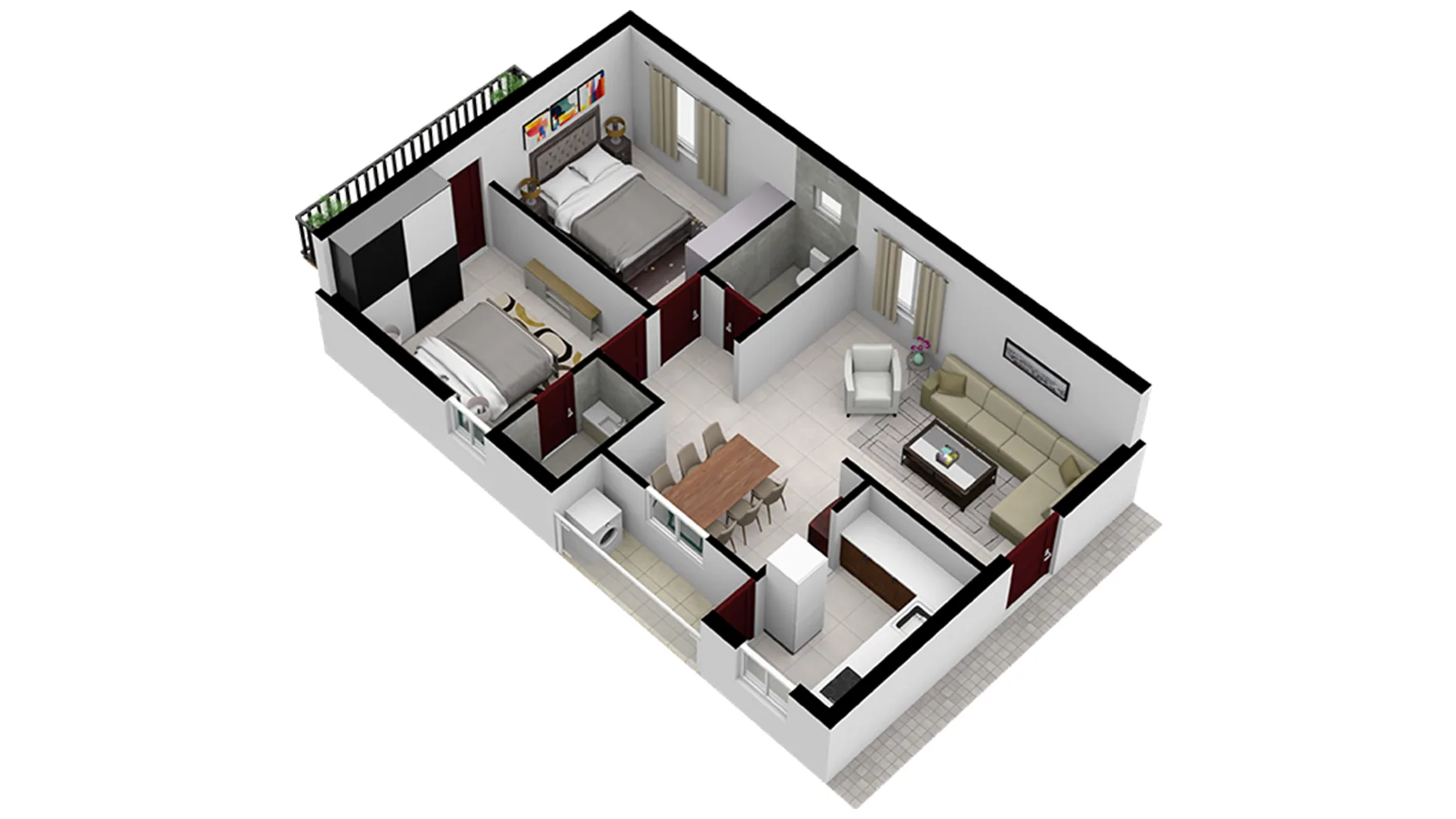 Vitrified Flooring: 600 X 600 size vitrified tiles for a sleek finish.